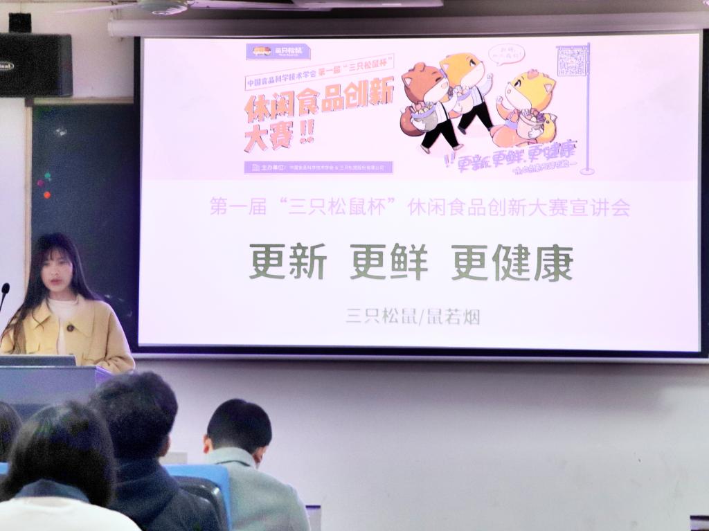 3月13日,“三只松鼠杯”休闲食品创新大赛宣讲会在食品楼215报告厅举行。本次大赛旨在提升学生的创新创业能力,为广大食品学子提供实践与技能展示的平台。本次活动由电影天堂