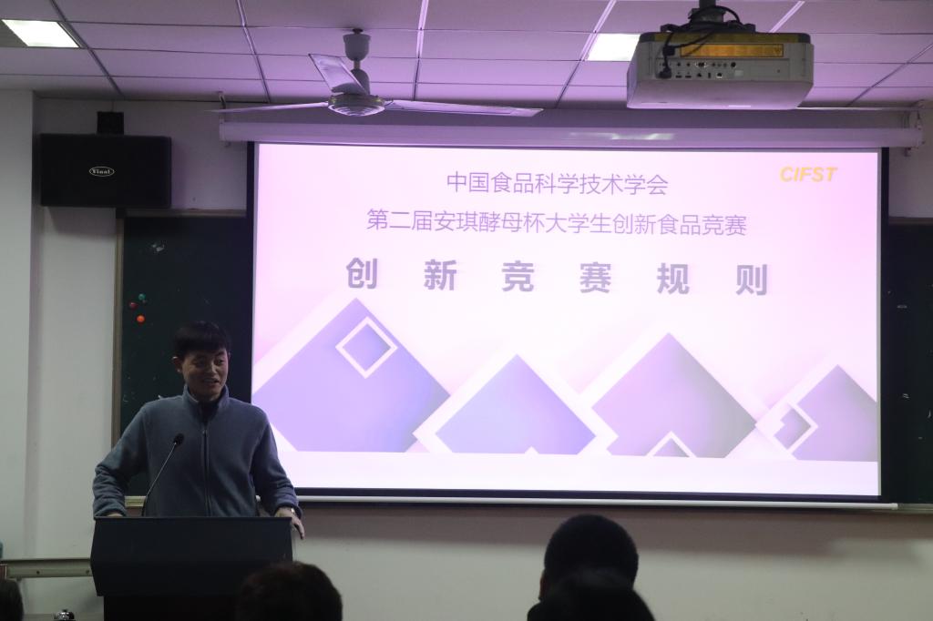 3月20日,第二届安琪酵母杯大学生创新食品大赛宣讲会于食品院院楼215报告厅举行。本次竞赛旨在贯彻落实国民营养计划,鼓励大学生积极创造和开发营养、健康美味食品,为广大学生提供参与创新实践的平台,应用科技创造生活,为健康中国贡献力量。食品院副院长暨中国食品科学技术学会青年委员会会员李春保教授主持本次活动,安琪酵母营养健康事业部研发高级工程师张海波出席了本次活动。