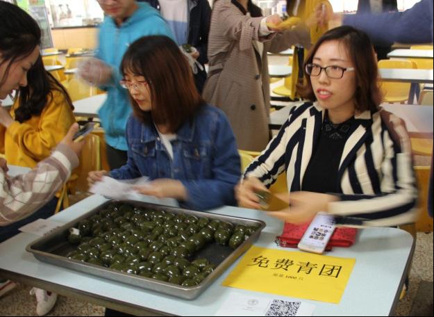 此次活动主要分为两个部分,学生制作青团和1000个青团免费发放。活动现场,好朋友餐饮管理有限公司的面点师傅利用青团制作原料制作了一些精致的面点,供大家参观。面点师傅向大家展示了制作青团的全过程,并手把手指导参与活动的师生们包青团,大家积极参与,兴趣高涨,现场制作氛围融洽。制作完成后,现场为学生们免费提供1000个青团,广受师生欢迎。