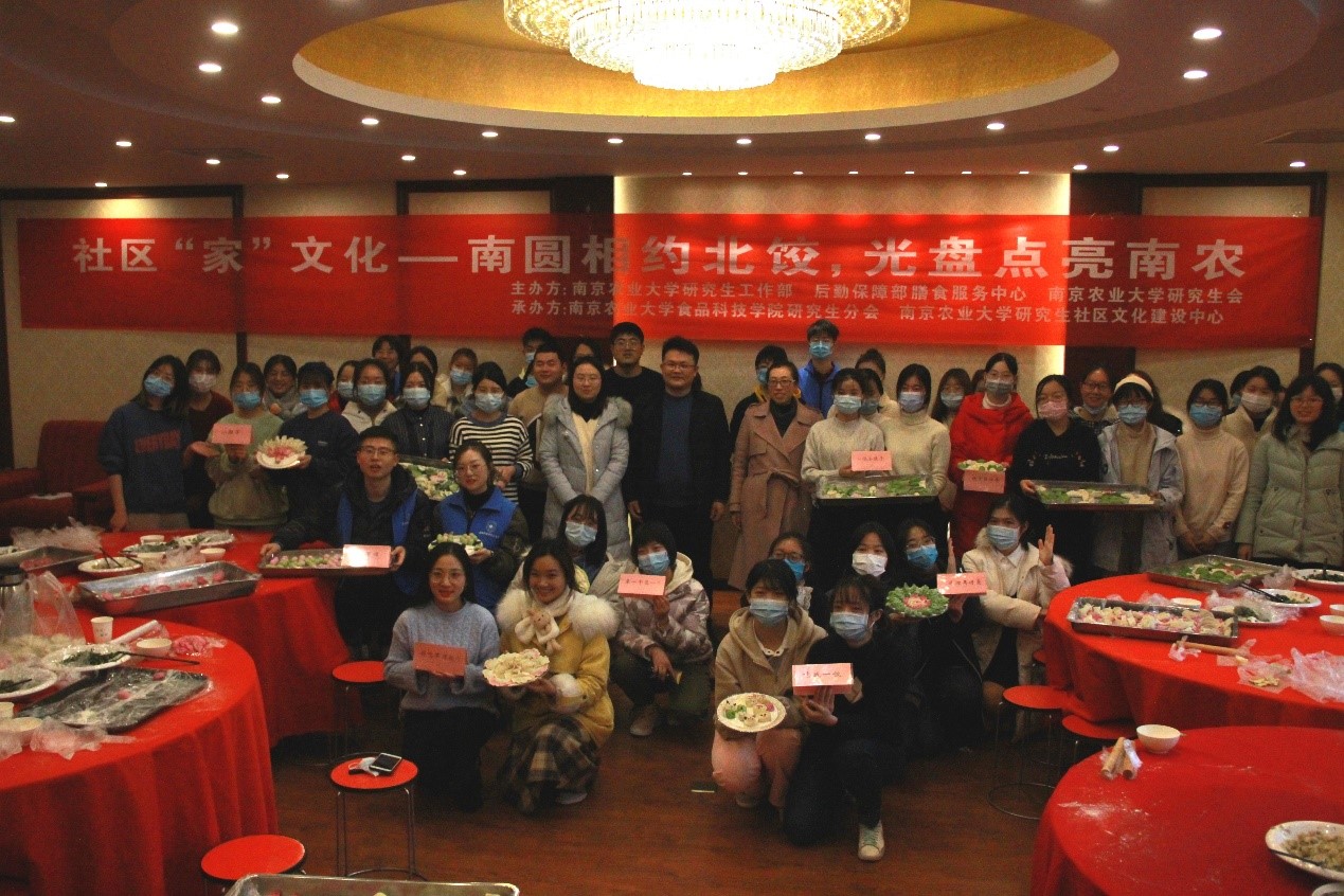 五颜六色的饺子被摆成了“秾”字,寓意南农大“饺”踏实地的精神。