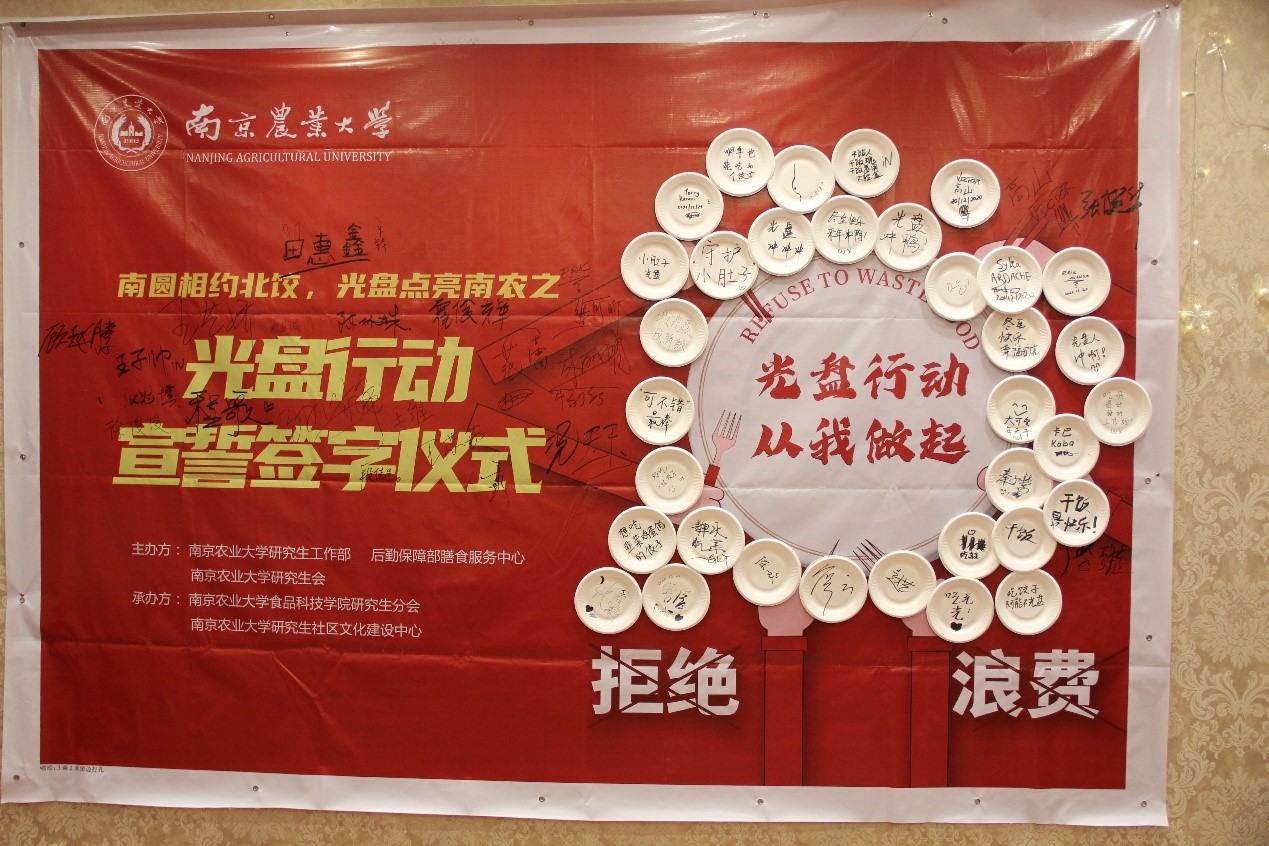 活动过程中,包括外国留学生在内的百余名同学在郑重的光盘宣誓:“我是南农学子,节约光荣,浪费可耻,从今天起,让光盘成为习惯,让节约变为自然,我光盘,我骄傲。”