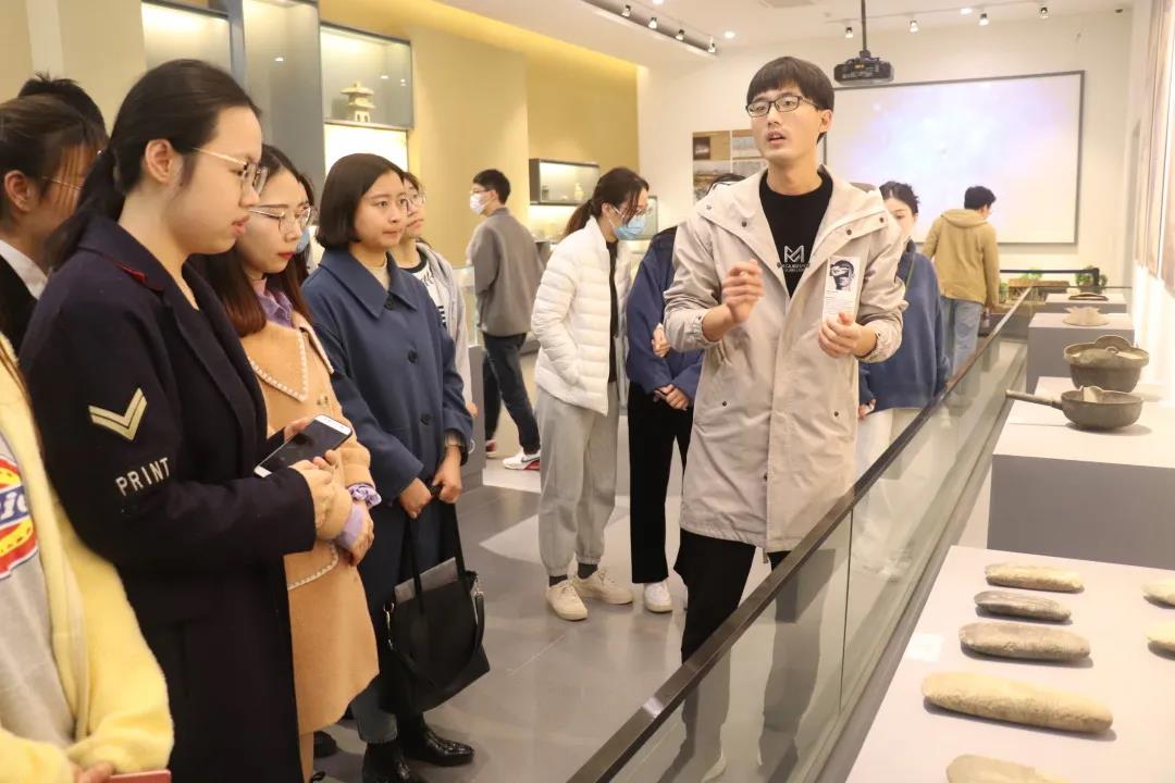 讲解员依次讲解了远古时期的碳化稻谷、清代大型龙骨水车等“镇馆之宝”,以及中国各地梯田地貌图、稻田种养示范图等,向同学们讲述农耕文化的发展演进和中国稻作的辉煌历史和灿烂文明。