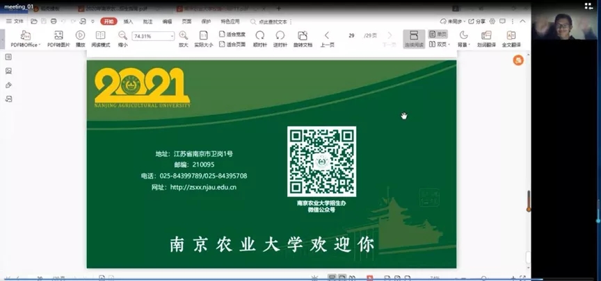 在假期中,我通过线上直播的方式向母校同学展示了南农的汇报情况。在宣讲的同时,对这所百年名校有了更深入的了解。