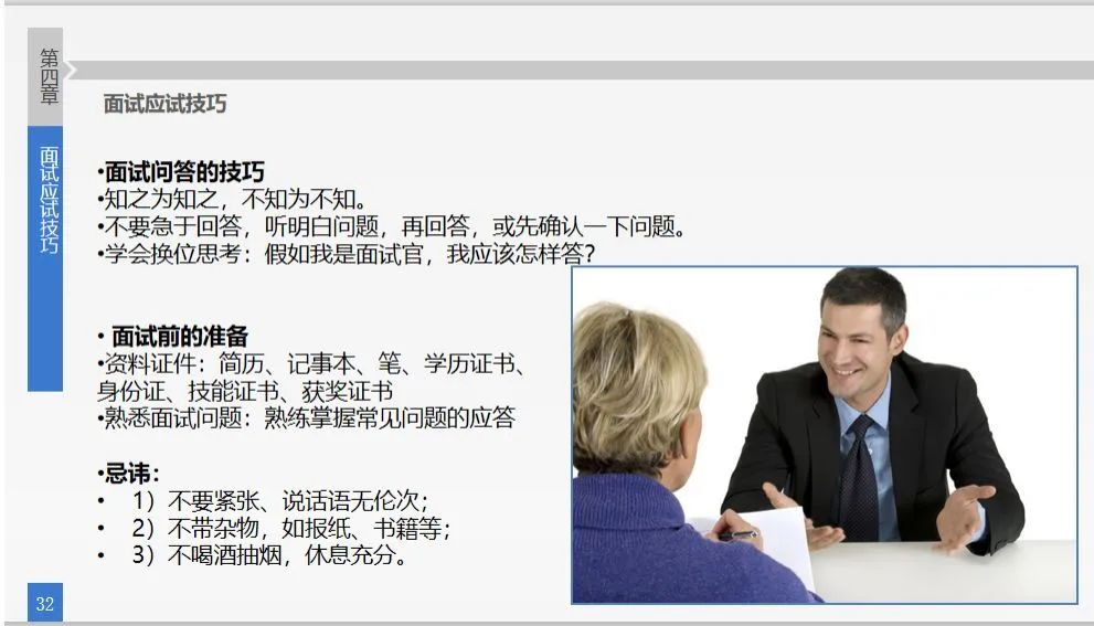 崔翔从简历作用概述、简历设计要点、招聘面试概述、面试应试技巧四个方面进行了介绍。他指出简历设计要突出重点,对照岗位需求,反复打磨。对于面试环节,他指出面试者常按照胜任素质模型的六个维度(专业知识、专业技能、综合/通用能力、个性特征、求职动机、态度/价值观)设计题目。他建议同学们在面试前充分准备、反复演练、保持平常心、处处显示积极向上的风貌有助于消除面试紧张感。