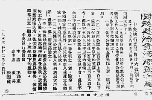 1952年4月16日毛泽东审阅修改关于中华人民共和国惩治贪污条例草案的说明稿。