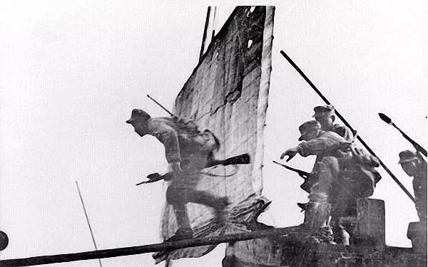 随着三颗红色信号弹划破夜空,人民解放军中、东、西三集团从西起湖口,东至江阴长达千里的长江北岸,以木帆船为主要航渡工具,排山倒海地强渡长江。江阴要塞7000余官后估炮台总台长唐秉林、游击炮团团长王德熔、守备总队长李云蔡等率领下战场起义,控制了江阴炮台,封锁了江面,致使国民党海军无法进入这段江域。