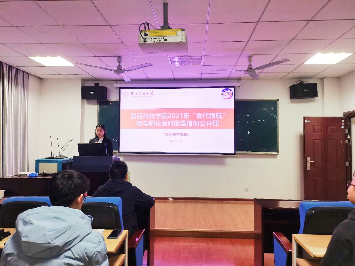 2021年“食代领航”——我与师长面对面暨信仰公开课活动在食品院215会议室顺利举行。本次系列讲座分别邀请了谢翀、赵雪、芮昕、郭仁朋四位不同研究方向的学院优秀青年教师,针对全谷物食品、肉品质量控制、微生物发酵技术及基因编辑技术等方向连续开展了四期专业启蒙教育,老师们通过案例分享、实物展示等多种方式帮助同学们更加生动详实的走进食品科学。