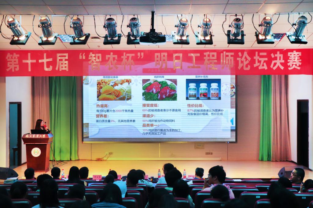 4月17日晚,第十七届“智农杯”明日工程师论坛竞赛篇决赛于教四楼报告厅举行。食品科学与工程系韩永斌教授、食品质量与安全系潘磊庆教授、生物工程系陈晓红副教授、校教务处教务科科长祖海珍、校学生工作处民族学生事务管理办公室主任裴海岩、校团委创促部副部长魏威岗担任此次大赛评委。食品院党委副书记邵士昌、辅导员陈宏强出席本次活动。