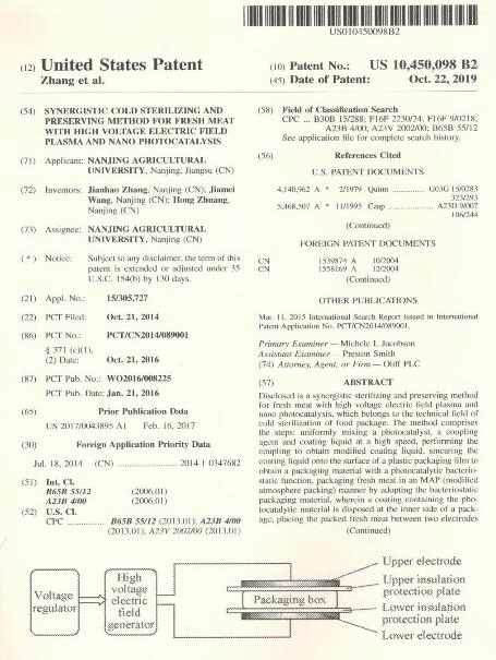 据悉,章建浩教授团队研发的“高压电场低温等离子体冷杀菌核心技术及装备”已获授权国家发明专利 5 项,实用新型3项、PCT国际发明专利2项;2019年授权的美国发明专利US10,450,098B2,从“高压电场CPCS核心技术原理”奠定了国际领先地位。