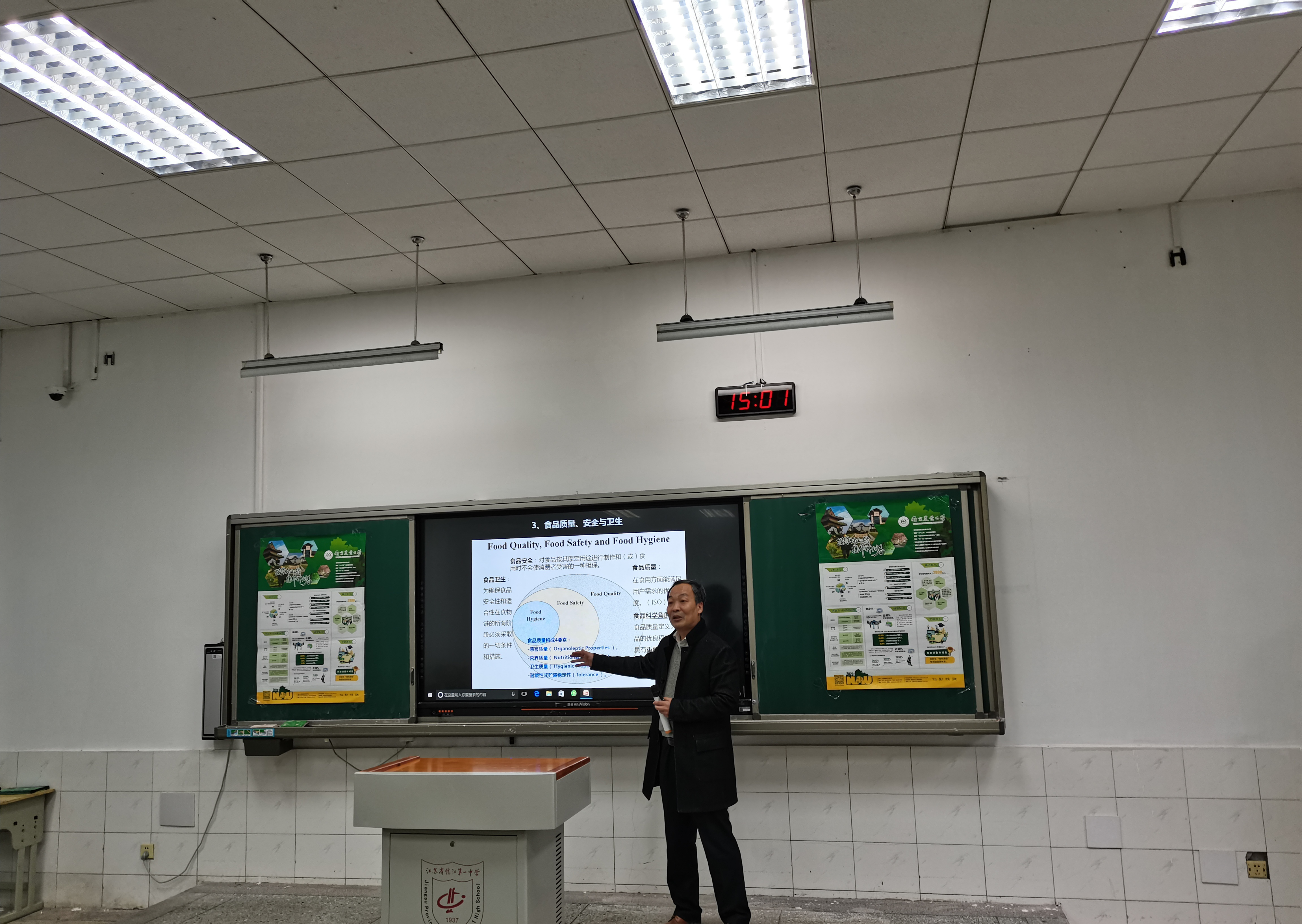首先,韩永斌以“我国食品营养、安全与国民健康”为主题为同学们上了一堂生动的食品科普公开课。先后从食品概念、分类与功能,我国食品消费与国民健康现状及趋势与对策及食品产业未来发展等方面进行了介绍。讲座过程中,他为高考备考的同学们提出了合理安排个人饮食、做好营养健康搭配提出了建议。