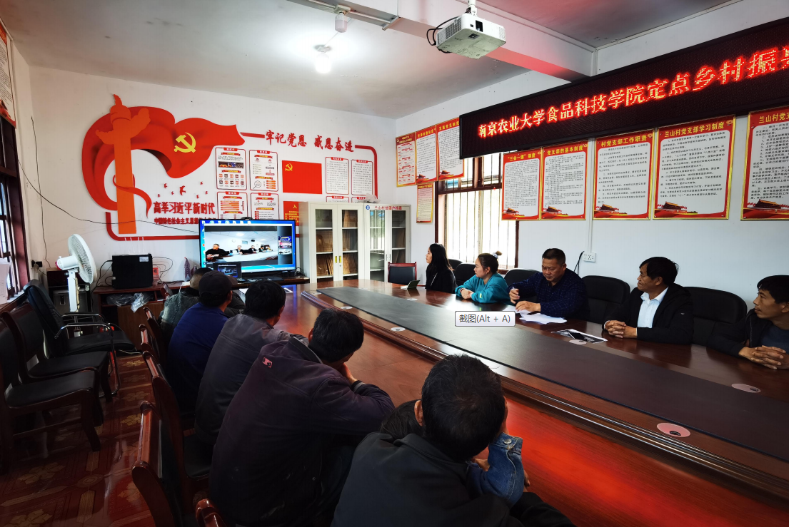 培训会上,我院与兰山村党支部在视频中进行了乡村振兴下一步工作交流。党委书记孙健表示,在接下来的帮扶中,一是尽最大的努力把蕨菜加工、食用菌林下栽培等科学发展技术相关培训开展到线下村组中,让科学技术在兰山壮产、富民;二是结合新时代新农村建设,引领兰山村“两委”考察观摩先进新时代新农村建设点,为兰山村在下步的新农村建设做好充足的准备。兰山村支部书记陈启华代表全体参会人员在会上发言,鸣谢南农技术的支持和引导,各位领导的关心和帮助,兰山村可谓“初冬温降、南农送炭、遇寒有暖”。为兰山村在乡村振兴实施步伐上夯实了基础,兰山村振兴新局面、新篇章又踏上一步新台阶。