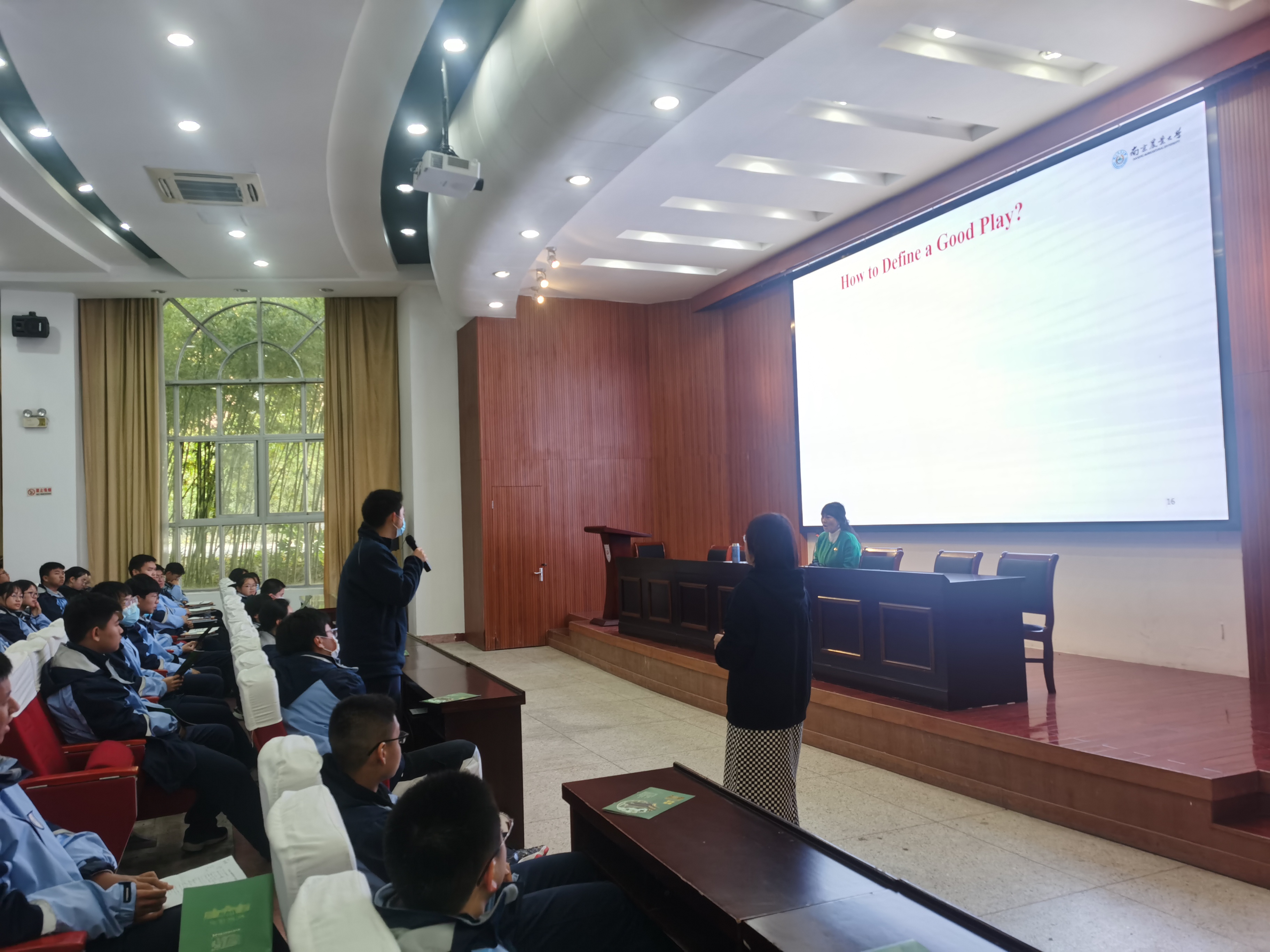 随后,董红梅以“西方戏剧赏析”为主题为同学们开展了一堂文化底蕴丰富的专题讲座,向同学们详细介绍了戏剧的种类、要素,并针对西方戏剧著作及著名戏剧家进行了详细介绍。讲座过程中同学们积极踊跃地提问,表示出对于西方戏剧的浓厚兴趣。