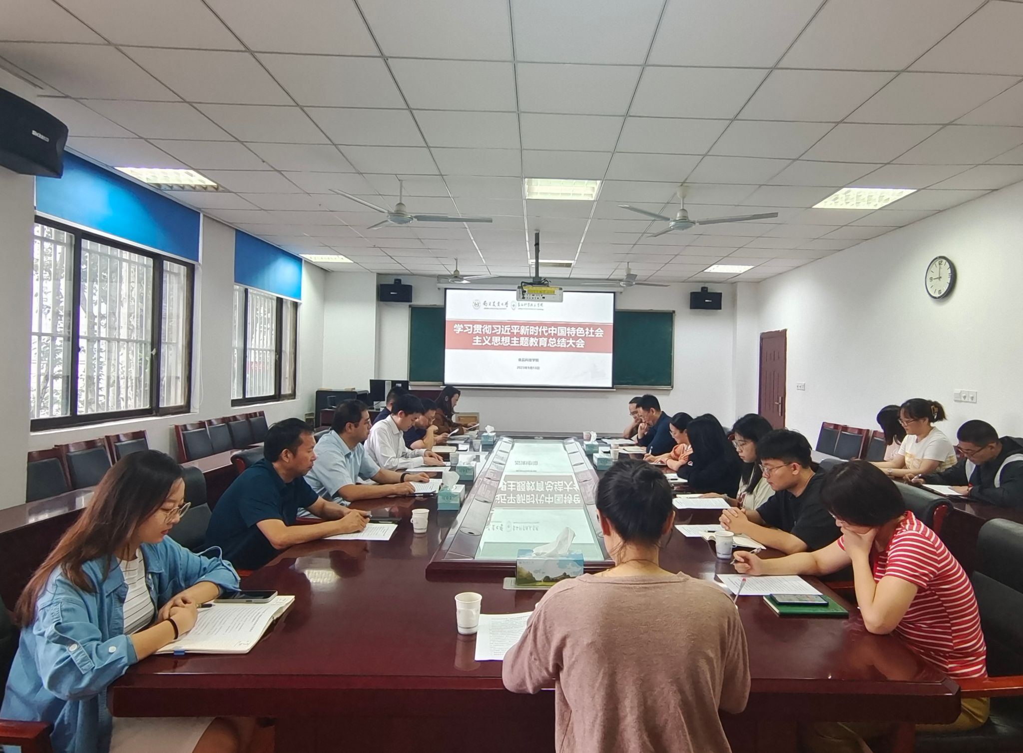 李春保在主持时强调深入开展学习贯彻习近平新时代中国特色社会主义思想主题教育,是贯彻落实党的二十大精神的重大举措,对于统一全党思想、解决党内存在的突出问题、始终保持党同人民群众血肉联系、推动党和国家事业发展,具有重要意义。本次主题教育也将成为我们继续提高本领,进一步增强指导推进学院各项工作的能力,进一步增强为师生解难题办实事的责任担当,进一步增强奋进新时代、服务教育强国建设,守卫中国人舌尖上安全的精神力量。