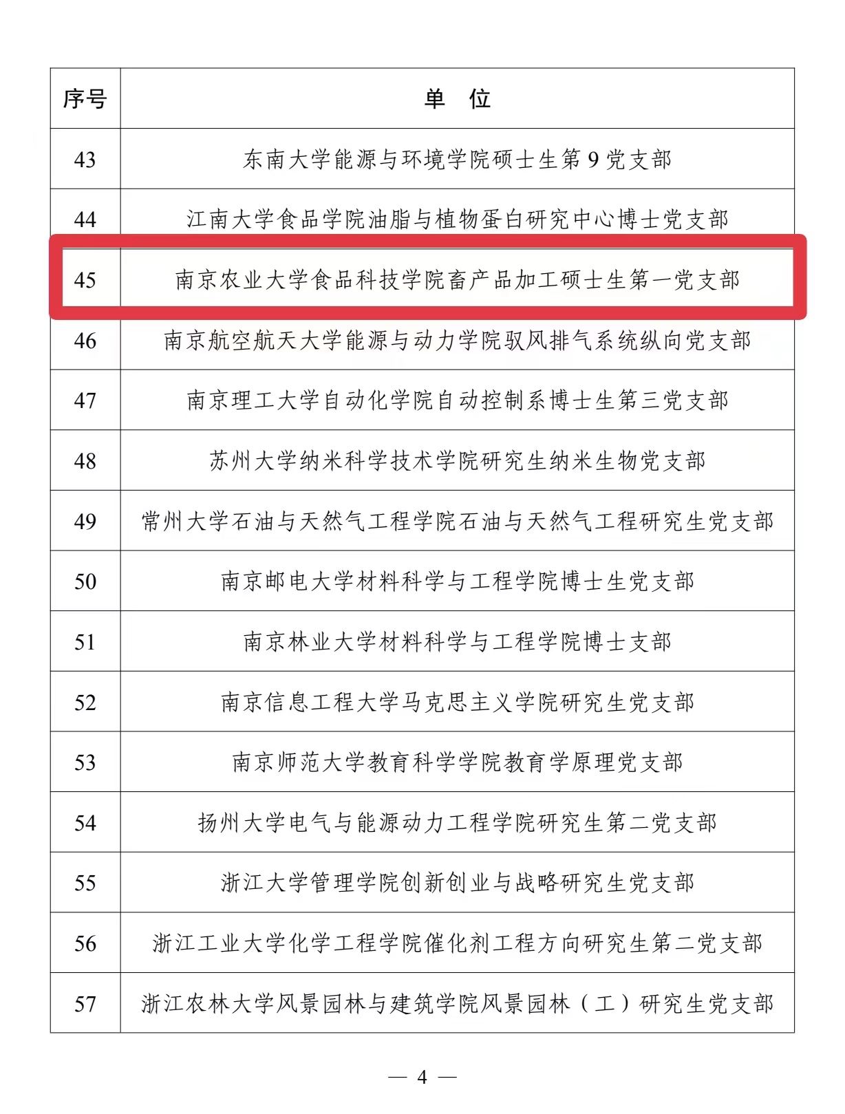 生物工程教师党支部入选第四批全国党建工作样板支部,畜产品加工硕士生第一党支部入选第三批全国高校“百个研究生样板党支部”。