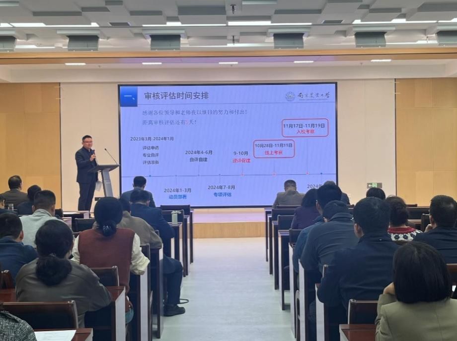 召开本科教育教学审核评估迎评工作会议,学院全体教职工参会。会议由学院党委书记孙健主持。