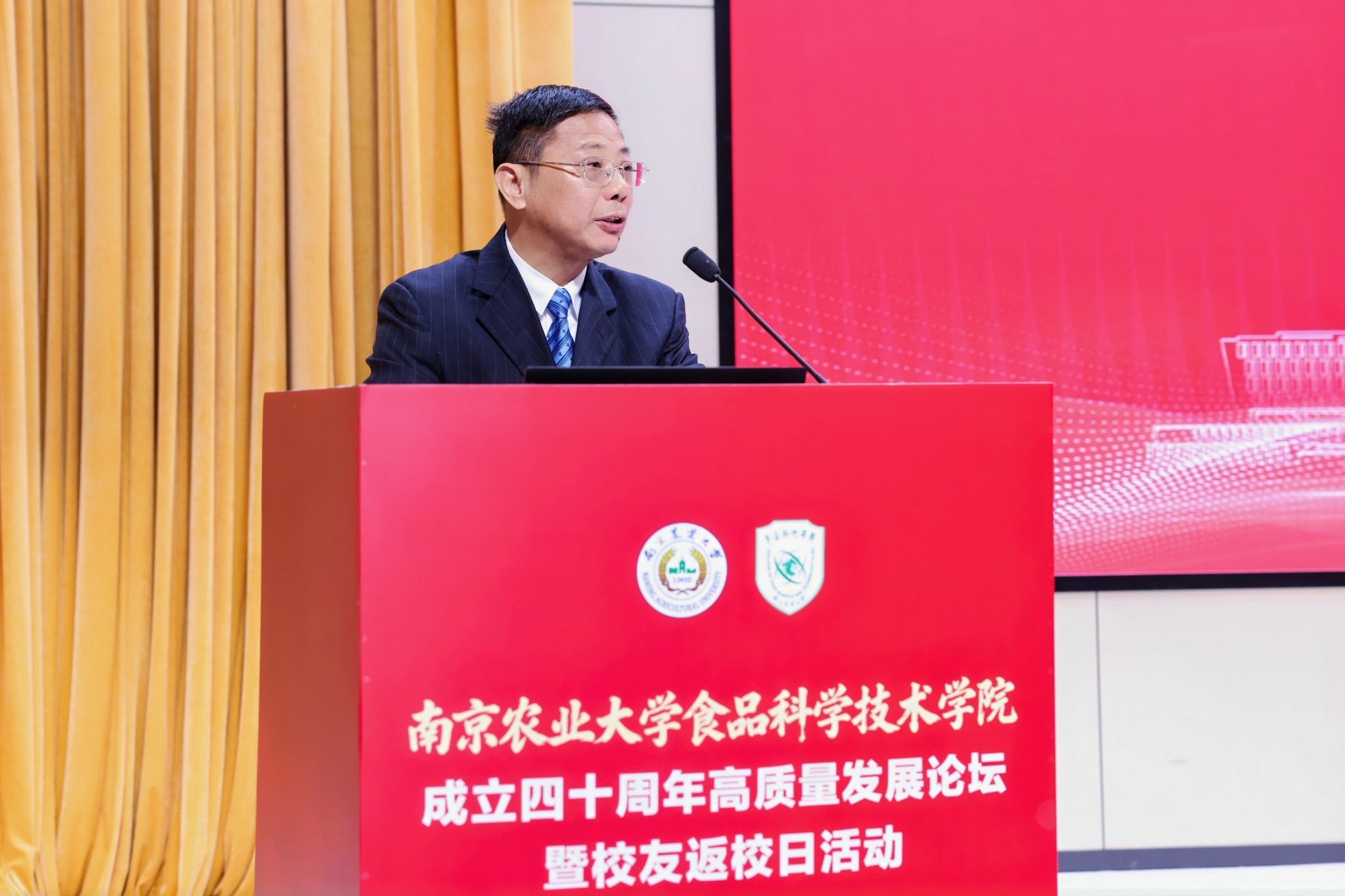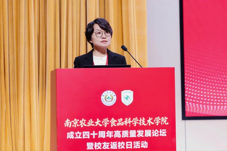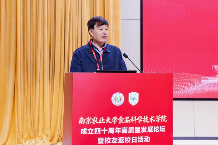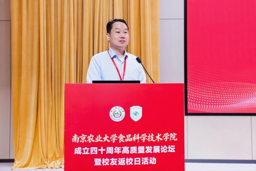 江苏省食品安全快速检测公共技术服务中心主任、南京工业大学食品与轻工学院熊晓辉作为校友代表发言,他深情回顾了与学院“亦师亦友亦生”的深厚情谊,表示广大校友将永远铭记母校培育之恩,秉承“诚朴勤仁”的南农精神,在各自岗位上续写辉煌,为母校发展贡献力量。