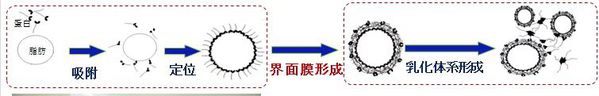 团队向记者解释,肌肉中有很多肌原纤维蛋白,在加热条件下,这些肌原纤维蛋白从无序分散的溶胶状态组装成立体网状的凝胶状态,能够有效地锁住水分。水分保住了,如何锁油呢?肌肉蛋白到底是如何吸附到脂肪上的呢?团队经过研究,首次发现在油水界面诱导下,肌肉蛋白发生了结构变化,疏水基团暴露,与脂质融合形成了乳化界面蛋白膜,也就是形成了“水包油”的结构,这一过程被称为“乳化”,该发现填补了国内肌肉凝胶乳化理论的空白。