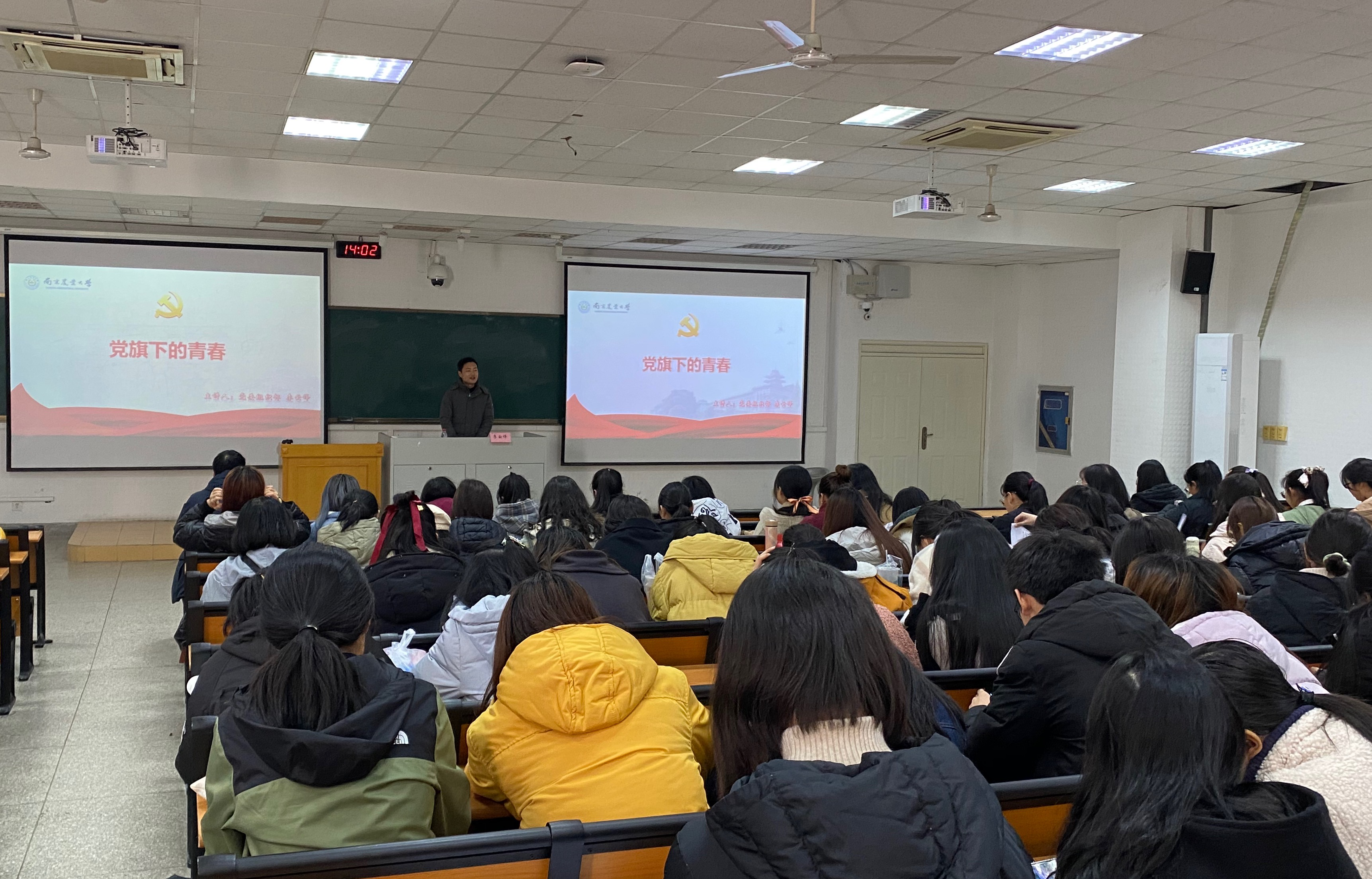 第二期入党积极分子线下专题党课在教学楼C301成功举行。学院邀请校党委组织部李云锋老师以《党旗下的青春》为题讲授专题党课,学院100余位入党积极分子参加此次活动,活动由学院本科生辅导员陈宏强主持。