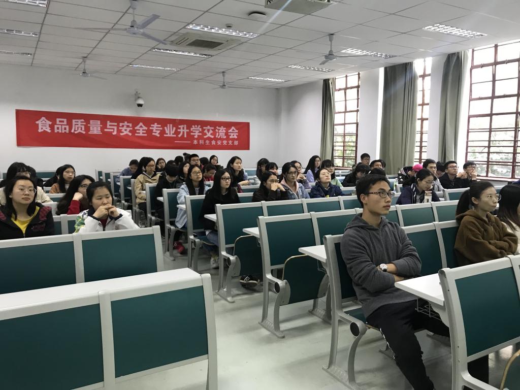 4月2日,为充分发挥党员先锋模范作用,突出党支部战斗堡垒作用,食品院本科生食安党支部在主楼102教室举办食品质量与安全专业升学交流会。五十余位本科生参与此次活动。