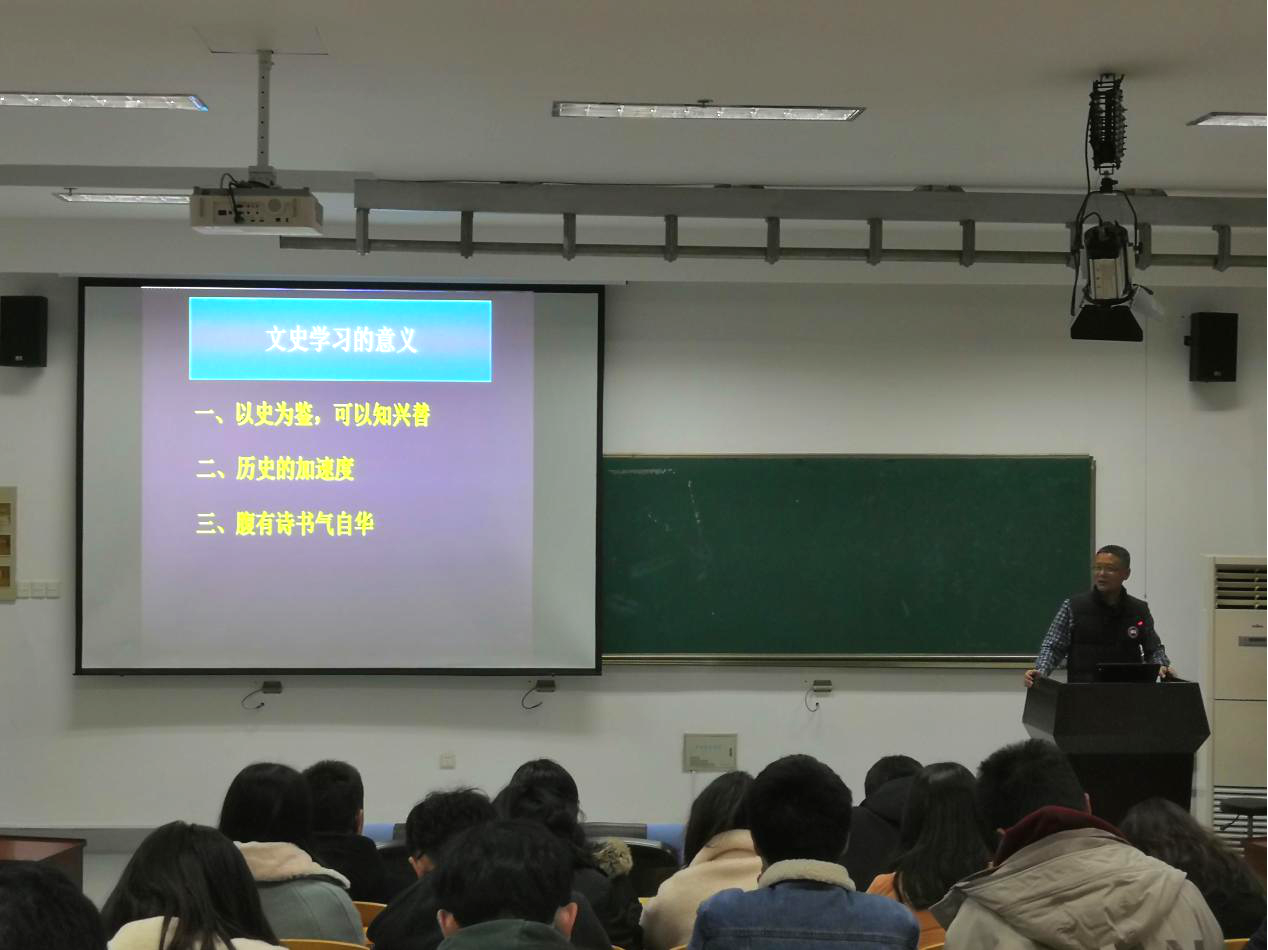 卢勇教授的报告重点围绕“四史”学习的意义和价值展开,结合他在访学期间的亲身经历以及中外大学运行机制的不同,指出文化自信的塑造要重视历史底蕴的培养、传统文化建设和辩证思维”,进而引出了“四史”学习的重要意义。