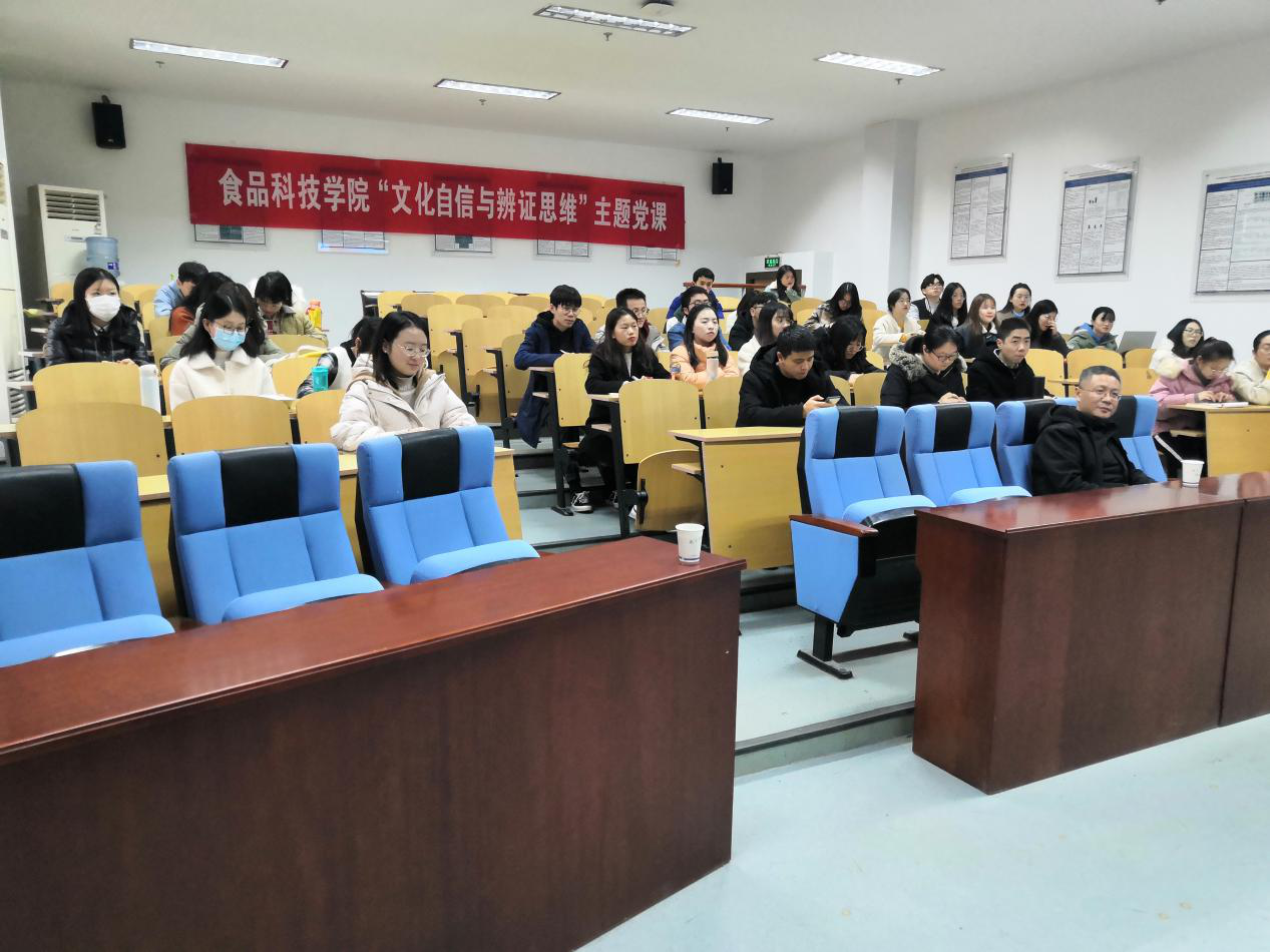 人文社科处副处长卢勇教授受邀开展报告。本次活动由食品院党委副书记邵士昌主持。