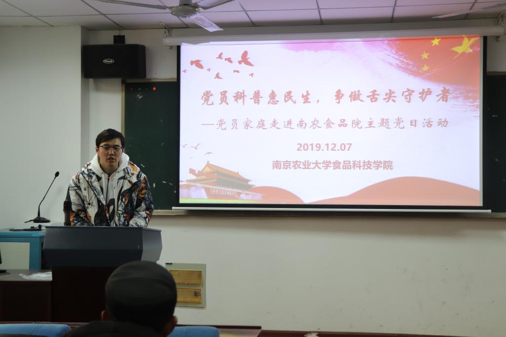 研究生生技第一支部和本科生食工党支部联合雨花经济开发区天保社区党总支,共同开展“科普惠民生,争做舌尖守护者”主题党日活动。共有12个党员家庭,走进南农校园,参与此次活动。