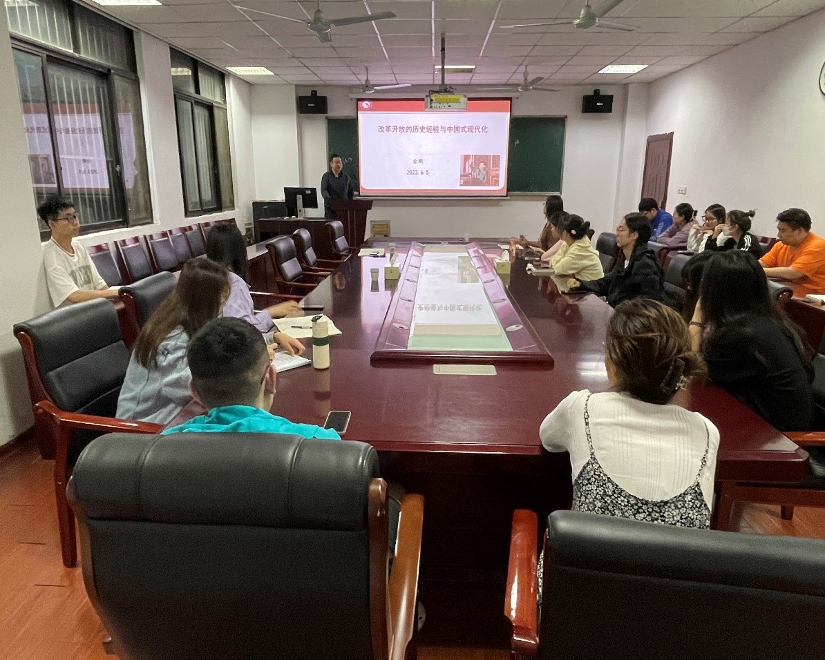副院长金鹏分别为支部党员讲授了《中国式现代化的历史逻辑》和《改革开放的历史经验与中国式现代化》专题党课,会议由副院长金鹏主持。